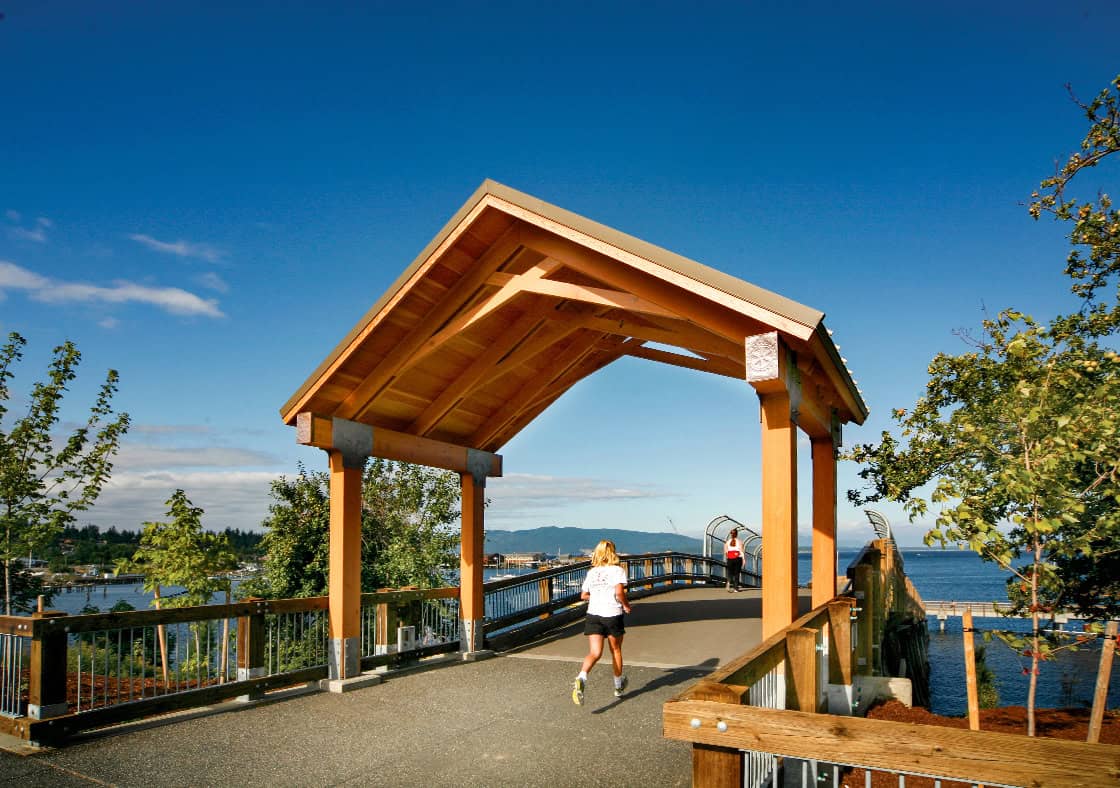 Taylor Dock Uplands Park is the overwater component that connects Downtown Bellingham with the Fairhaven District, enabling pedestrian and bicycle commuters to access these popular destinations. The project includes three structures: a gateway, a dock with a picnic pavilion, and a landside restroom/storage building in addition to the development of a plaza, small craft float dock, and ADA trail.
